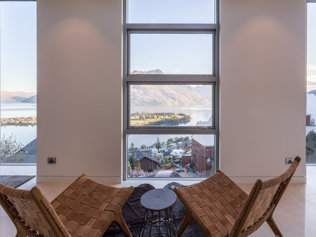 This expansive 363 square metre villa on Queenstown Hill is a fabulous destination for your next vacation. The home boasts light-filled living areas with floor-to-ceiling windows, showcasing the stunning scenery. Relax by the gas fireplace, or gather around the spacious dining table that seats up to eight people. A fully equipped kitchen with an induction cooktop and coffee machine, is perfect for whipping up delicious meals.