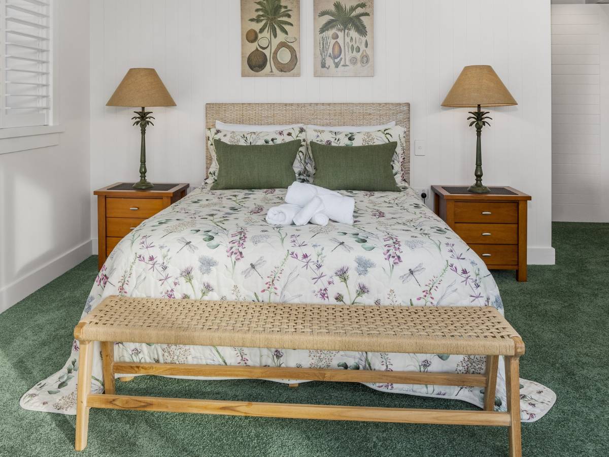 Inside, white beamed vaulted ceilings, wide glass doors and Plantation-style decor greets you. Step through the glass doors and the breathtaking ocean views which will melt your stress away. You’ll instantly feel relaxed as you watch over the native garden, admiring the pohutukawas, and watching the tuis flit. Witness the gannets soar and dive for fish, and keep your eyes peeled – dolphins and orcas have been known to grace these waters! Enjoy a refreshing Nespresso coffee on the sun-drenched deck in the morning, and fire up the BBQ for memorable evenings spent under the starlit sky.