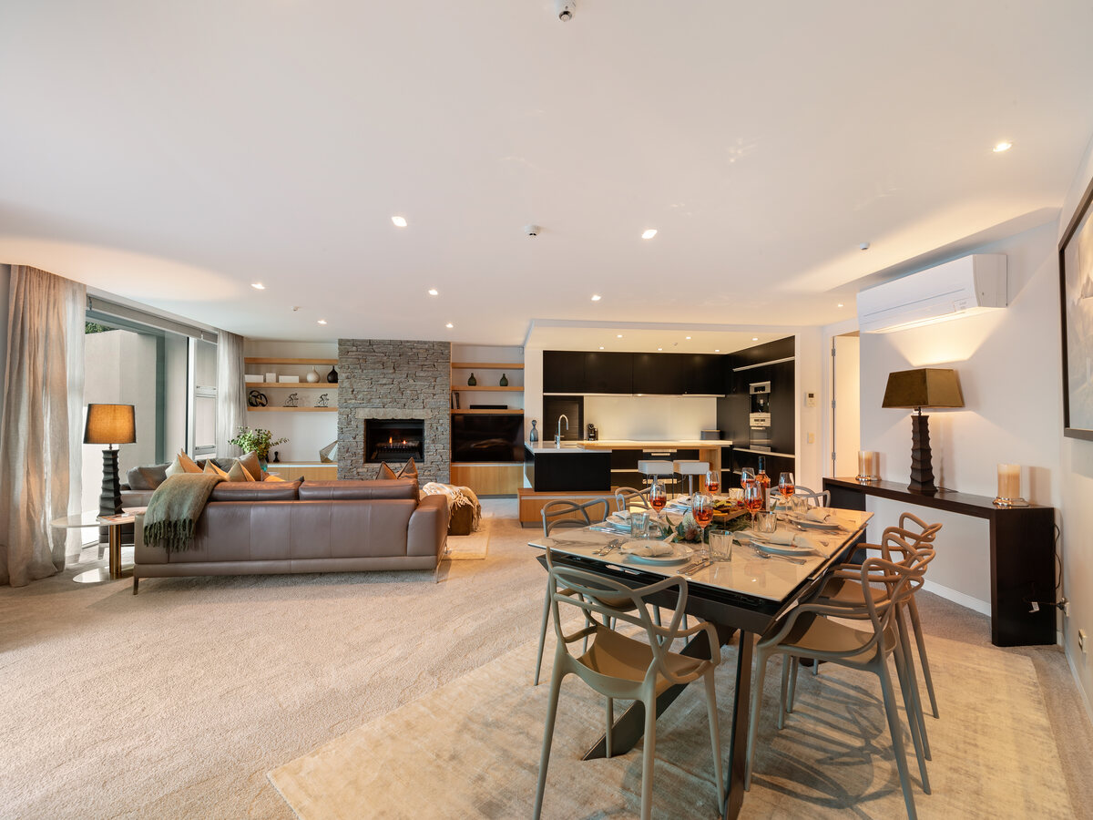 Situated just steps away from central Queenstown, this sophisticated three-bedroom apartment places you right in the heart of the action and boasts stunning views of Queenstown Bay.