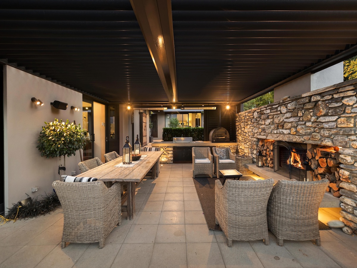 This modern property is perfect for your Queenstown getaway. Sleeping up to 12 guests across 5 bedrooms and 4.5 bathrooms, Rangiātea is perfect for family gatherings or small group vacations. A large, open plan kitchen and dining room connect seamlessly to the living area, complete with wood fire and cosy, stylish furnishings. Adjacent, you’ll find a second large living area and media room, expanding your entertaining space so there’s room for everyone. You can even enjoy a drink at the home’s personal bar.